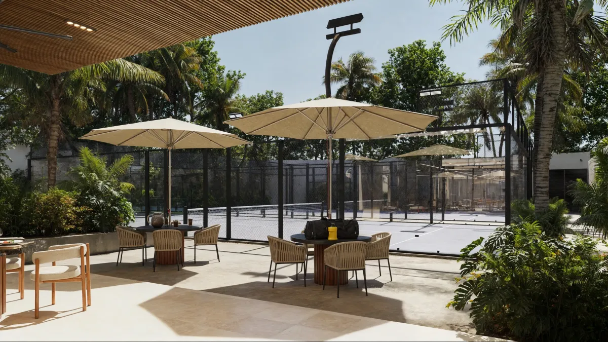 Canchas de padel: Dos canchas de pádel con área de refresh