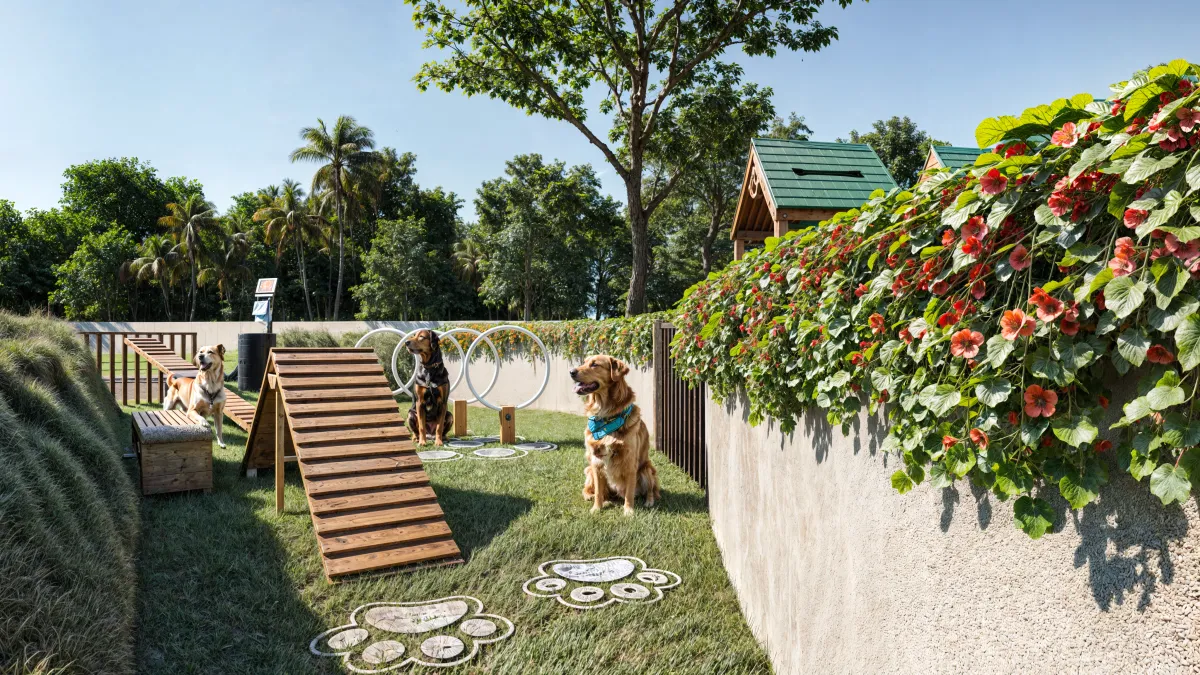 Pet park: Con áreas de división para razas pequeñas y grandes