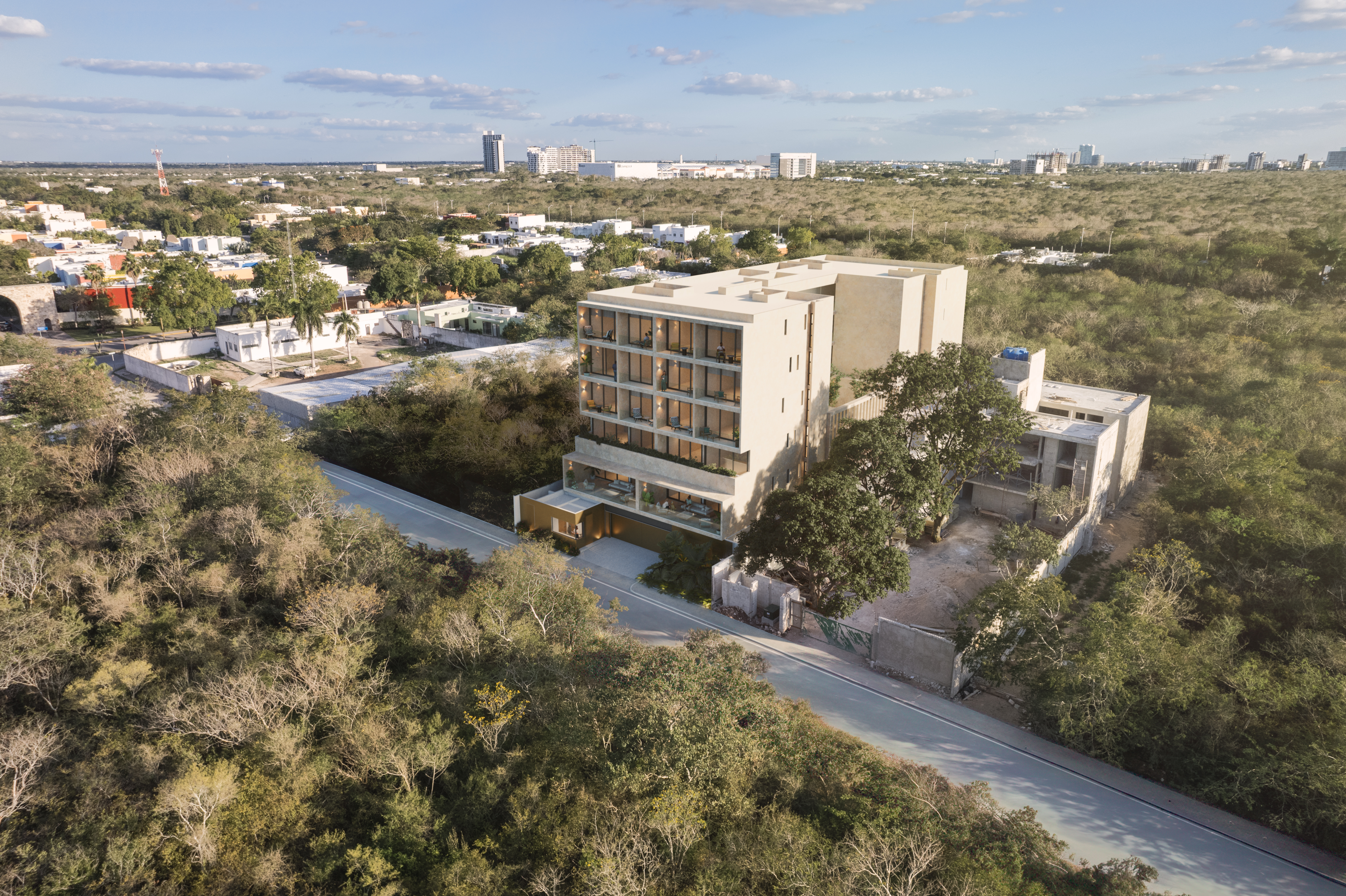 Es un complejo de 45departamentos de 1ó 2 recámaras; ubicados en Temozón Norte, zona de alta plusvalía; cuenta con tres niveles, elevador y amenidades.