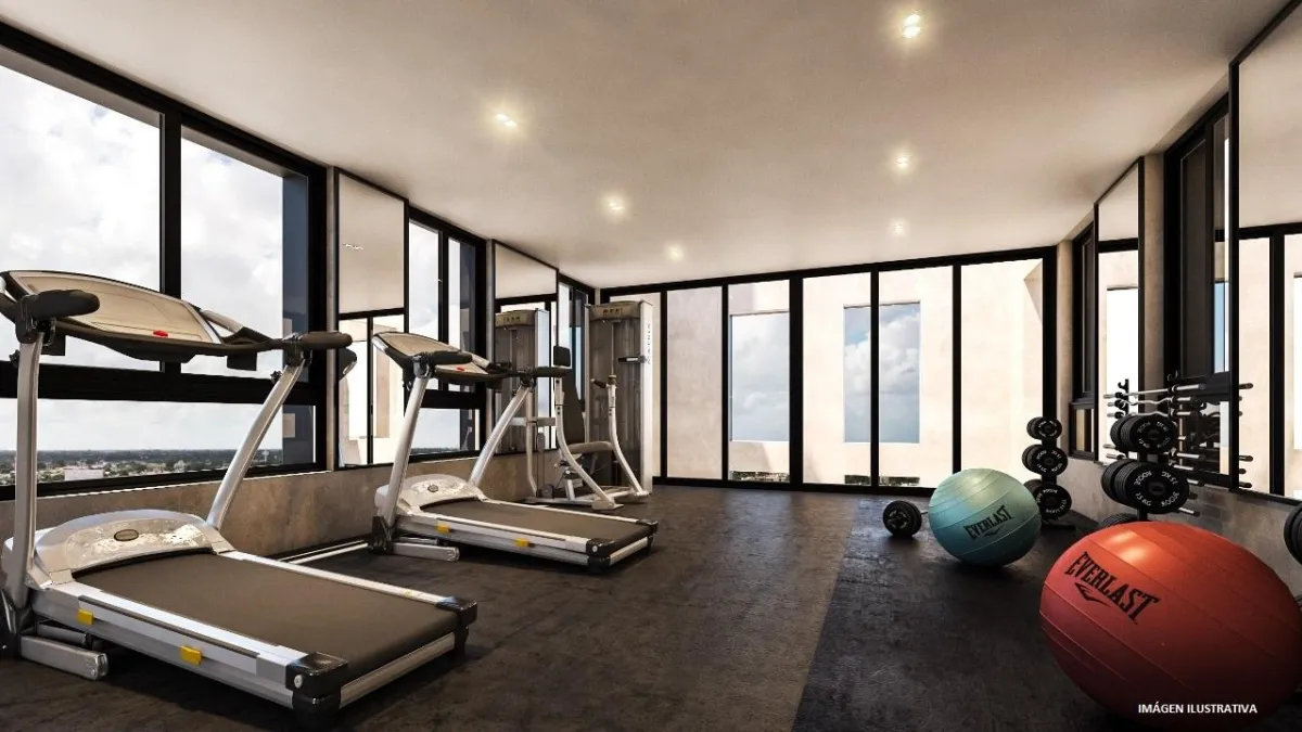 Lobby con dos elevadores. Gimnasio equipado, un co-work cómodo con wifi, sala de juntas y sala de espera. Completamente pet friendly y con todo lo necesario para ser rentado por Airb&b.